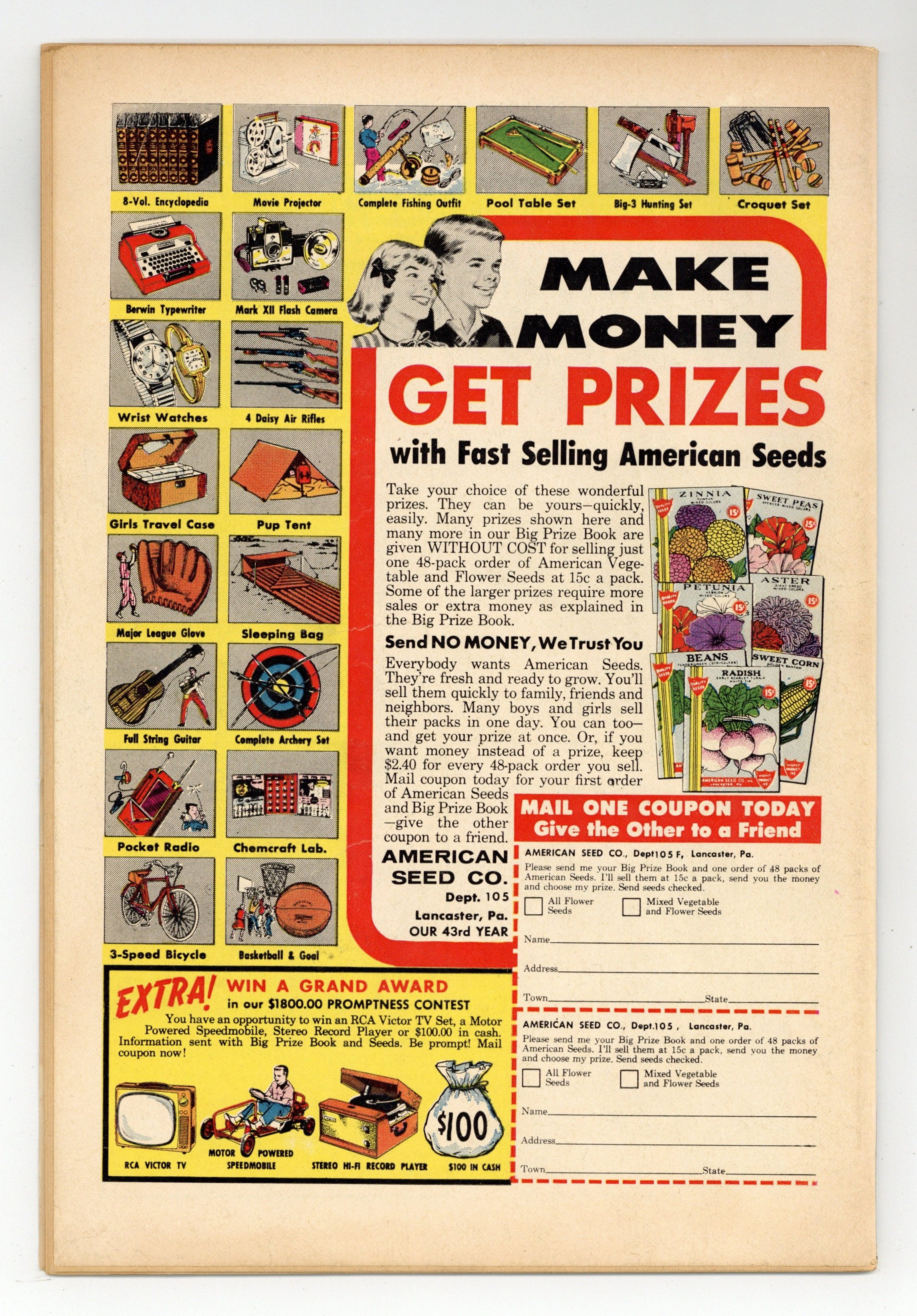 Starts Apr 4 The Justice Society of America star in "The Strange Lives of Edmund Blake!" Script by John Broome, pencils by Arthur Peddy (splash page and chapters 1 and 3) and Irwin Hasen (chapter 2), inks by Bernard Sachs (splash and chapters 1 and 3) and Bob Oksner (chapter 2). Back-up Johnny Peril's Surprise Story, "The Littlest Planet!" Two-page article, "Frontier Surgeon," about Ephraim McDowell, by William Irwin. Peddy/Sachs cover. 52 Pages, Full Color. Cover price $0.10.