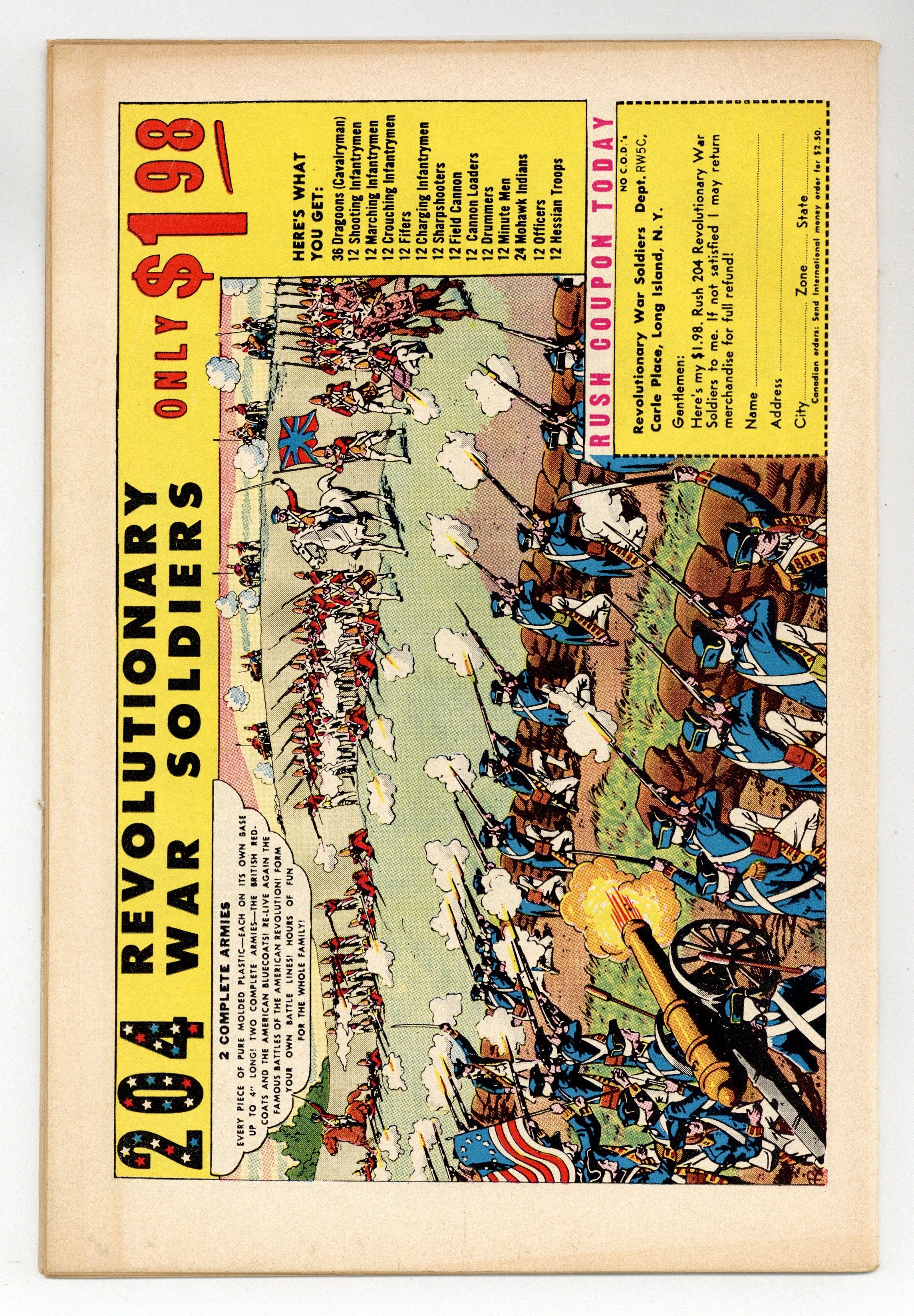 Starts Apr 4 The Justice Society of America star in "The Adventure of the Invisible Band!" Script by John Broome. Pencils by Irwin Hasen (splash page and chapters 1 and 3) and Arthur Peddy (chapter 2), inks by Bob Oksner (splash and chapters 1 and 3) and Bernard Sachs (chapter 2). Back-up story, "The Fabulous Ride of Portugese Jack!" Back-up Johnny Peril's Surprise Story, "Colossus!" Two-page article, "In the Days of Knights" by John Osgood." Peddy/Sachs cover. 52 Pages, Full Color. Cover price $0.10.