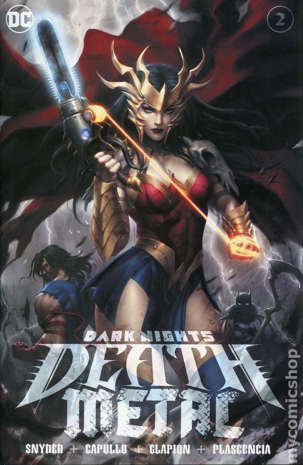 Written by Scott Snyder. Art by Greg Capullo and Jonathan Glapion. Cover by Greg Capullo. Get ready to scream! Wonder Woman roars across the horrifying Dark Multiverse landscape in the world's most demented monster truck, with Swamp Thing riding shotgun! The two arrive at the ghoulish cemetery base of Batman and his army of zombies, but can the former friends stand each other long enough to form a plan and take back the planet? Plus, what's Lobo doing in space? Don't miss the second chapter of the wildest ride in the DC Universe, from the epic team of writer Scott Snyder and artist Greg Capullo! 32 pages, full color. Rated T+ Cover price $4.99.
