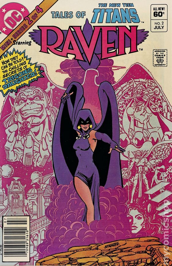 Direct Edition. Raven tells the other Titans about her past, speaking of her parents' union, her time in Azarath, and her first encounter with Trigon in "Raven." 25-page tale. Appearances by Robin, Wonder Girl, Kid Flash, Starfire, Changeling, Cyborg. Script by Marv Wolfman, pencils by George Perez, inks by Pablo Marcos. Raven pin-up by Perez. Cover by Perez. Cover price $0.60.