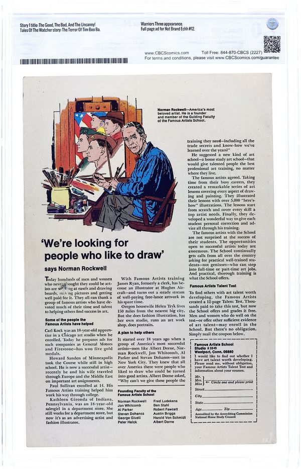 Starts Apr 4 "The Good, the Bad, and the Uncanny!" Guest-starring Thor. Written by Stan Lee. Art by John Buscema and Sal Buscema. Cover by John Buscema. When the Silver Surfer ventures to fabled Asgard, home of the Norse Gods, a misunderstanding sets the Sentinel of the Spaceways against the mighty God of Thunder. It's the Power Cosmic vs. godly might. It's Thor vs. the Silver Surfer in a battle that will truly shake the heavens! Includes the Watcher back-up "The Terror of Tim Boo Ba." Story by Stan Lee. Art by Howard Purcell and Paul Reinman. Low distribution. 68-page giant. Cover price $0.25.