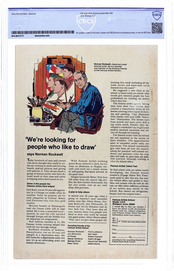 Ends Apr 15 7:46 PM CST Bid History 17 bids Current Bid $925 Your Secret Max Bid If you'd like to bid, please log in or register. "The Good, the Bad, and the Uncanny!" Guest-starring Thor. Written by Stan Lee. Art by John Buscema and Sal Buscema. Cover by John Buscema. When the Silver Surfer ventures to fabled Asgard, home of the Norse Gods, a misunderstanding sets the Sentinel of the Spaceways against the mighty God of Thunder. It's the Power Cosmic vs. godly might. It's Thor vs. the Silver Surfer in a battle that will truly shake the heavens! Includes the Watcher back-up "The Terror of Tim Boo Ba." Story by Stan Lee. Art by Howard Purcell and Paul Reinman. Low distribution. 68-page giant. Cover price $0.25.