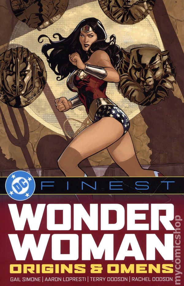 2nd and later printings. Collects Wonder Woman (2006-2011 3rd Series) #14-35, Outsiders: Five of a Kind Week 5: Grace Wonder Woman, and The Brave and the Bold (2007 3rd Series) #7. Written by Gail Simone, Marc Andreyko, and Mark Waid. Art by Terry Dodson, Rachel Dodson, Bernard Chang, Aaron Lopresti, Matt Ryan, Cliff Richards, Art Thibert, George Pérez, and Bob Wiacek. Cover by Terry Dodson and Rachel Dodson. READ GAIL SIMONE'S ICONIC RUN FROM THE VERY BEGINNING! Art by Terry Dodson, Rachel Dodson, Bernard Chang and Others On Themyscira, she is known as Diana, but to the rest of the world, she is called Wonder Woman due to her strength, bravery, and courage! In her first DC Finest collection, we land in the beginning of acclaimed writer Gail Simone's (Birds of Prey) fan-favorite era that delved heavily into the history and mythology of the Amazons. These stories, including The Circle, Ends of the Earth, and Rise of the Olympian, saw Diana facing classic foes like Captain Nazi, literary monsters such as Grendel, and, of course, her longtime nemesis Ares. Each DC Finest volume is the perfect starting point to get acquainted with a character and jump into tales that have contributed to their rich histories! DC Finest: Wonder Woman: Origins & Omens collects these Wonder Woman issues from October 2007 to 2009. Softcover, 584 pages, full color. Teen Cover price $39.99.