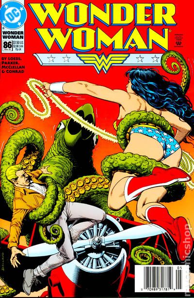 Direct Edition. Written by William Messner-Loebs, with art by Jeff Parker, Aaron McClellan and Kevin Conrad. Cover by Brian Bolland. When one of Diana's friends is kidnapped, Wonder Woman busts loose in her efforts to find her. But her new, tougher methods lead to a major blowout with the authorities. 36 pgs. Cover price $1.50.