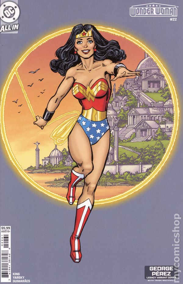 Written by Tom King. Art by Caitlin Yarsky. Cover by George Perez. THE MOUSE MAN COMETH! As the stage is set for our next tale, Diana tells their daughter the story of one of their greatest adventures together. The maniacal Mouse Man debuts looking to prove himself against the Amazon Princess and severely underestimates how powerful she and her allies truly are. Could his humiliating defeat have repercussions for Diana in the future? 32 pages, full color. Rated T+ Cover price $5.99.
