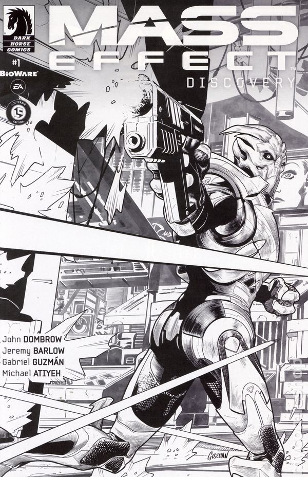 Written by Jeremy Barlow and John Dombrow. Art by Gabriel Guzman. Cover by Gabriel Guzman. A young Turian military recruit goes undercover in order to infiltrate the mysterious Andromeda Initiative-and ultimately retrieve a scientist who's made a potentially devastating discovery. Tying in to the highly anticipated release of Mass Effect: Andromeda, writers Jeremy Barlow and John Dombrow and artist Gabriel Guzmán team up to create the next exciting chapter of the Mass Effect comics series! From Eisner Award-nominated writer Jeremy Barlow! 28 pages, full color. Cover price $3.99.