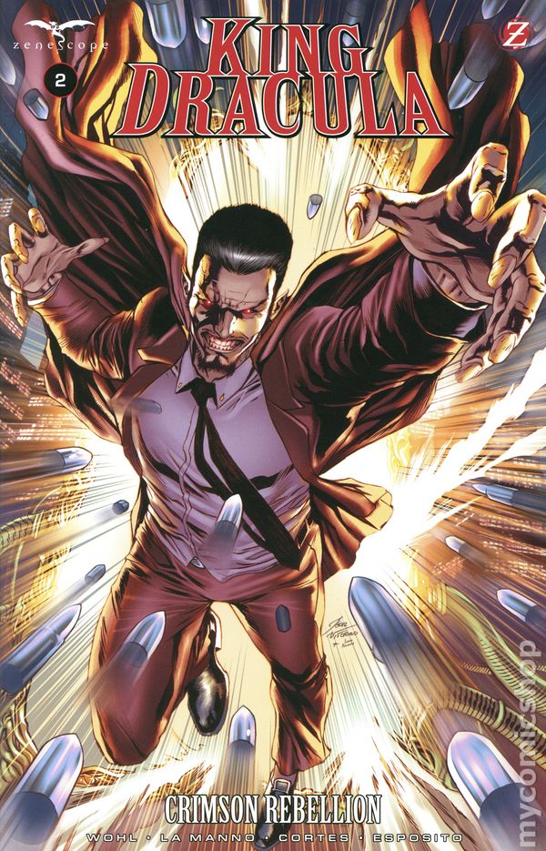 Written by David Wohl. Cover by John Royle Written by David Wohl. Reinvigorated but still hunted, Dracula emerges from the sewers of New York City, ready to take back the world that was so ruthlessly stolen from him. But he realizes the Vampire Lords control has grown even deeper into the roots of society in his absence, and new dangers lurk at every turn. But desperate times call for desperate measures, so he seeks an unlikely ally who despises him more than any other…his Daughter! 32 pages, rated T, full color Cover price $50.00.