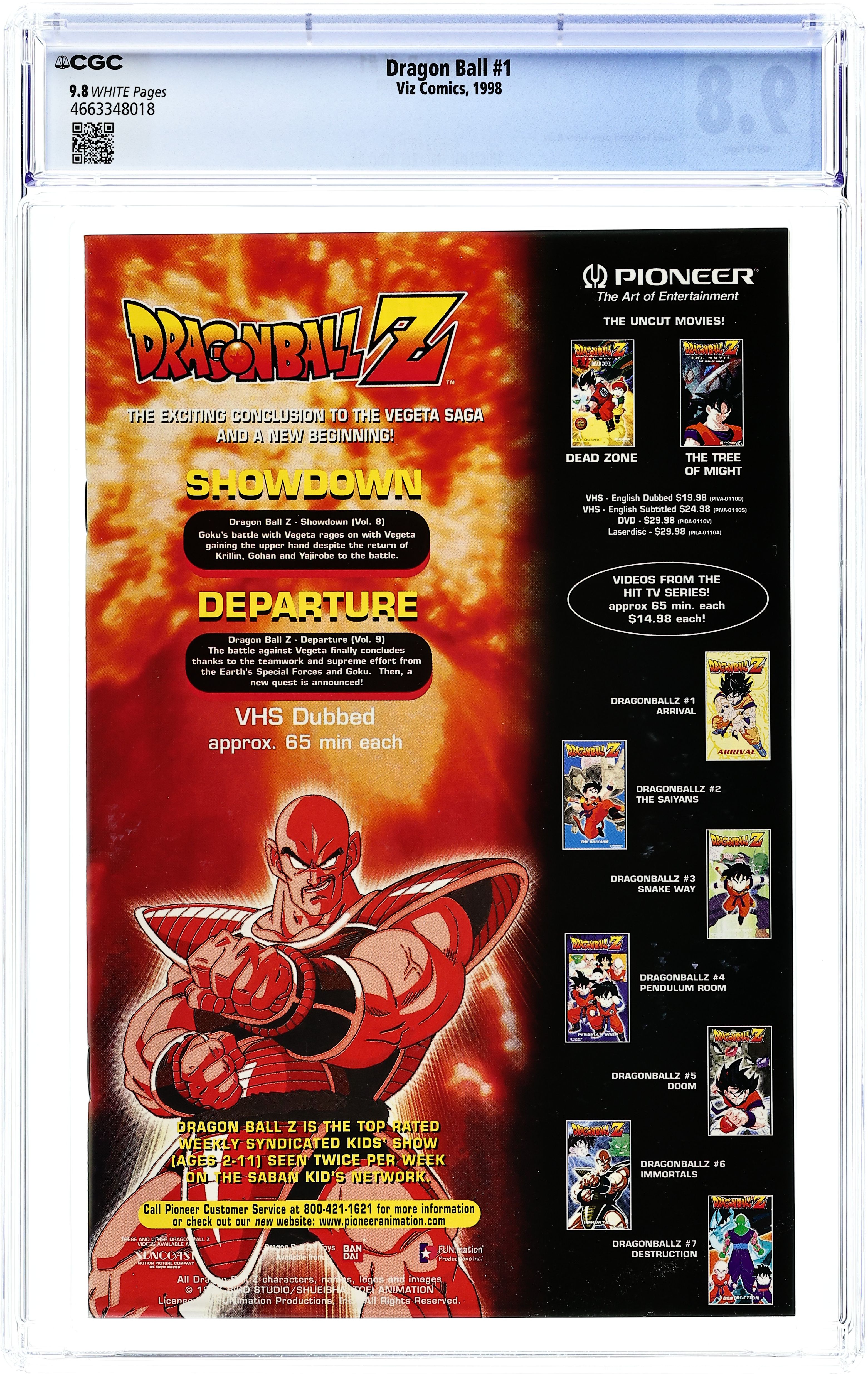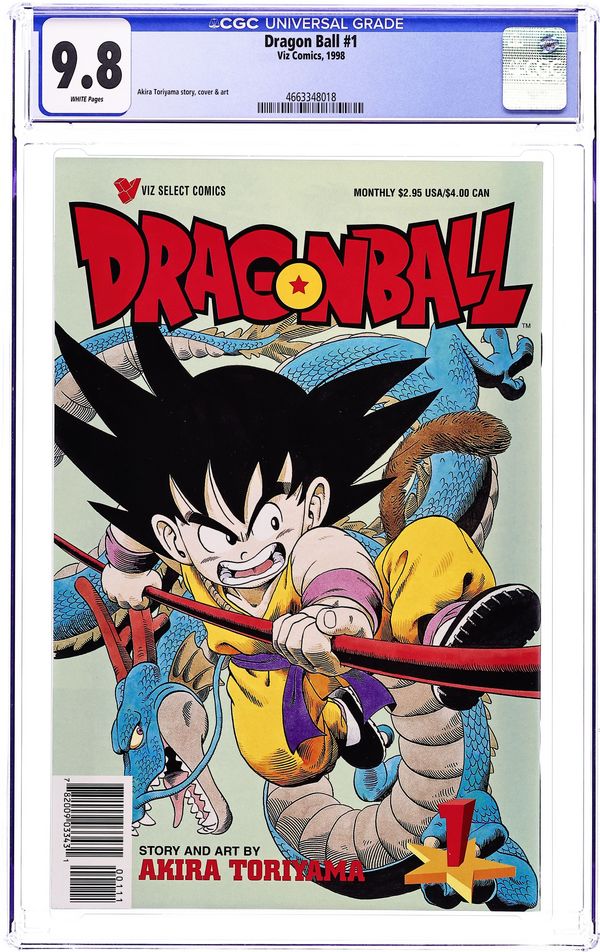 1st printing. Story and Art by Akira Toriyama. The most popular manga in the world finally comes to America! Printed right to left like authentic Japanese manga! Meet a young monkey-tailed boy named Goku, whose quiet life changes when he meets a girl named Bulma, who is on a quest to collect seven 'Dragon Balls.' If she gathers them all, an incredibly powerful dragon will appear and grant her one wish. But the precious orbs are scattered all over the world. Could Bulma use the help of a certain super-strong boy? 32 pages, B&W. Cover price $2.95.
