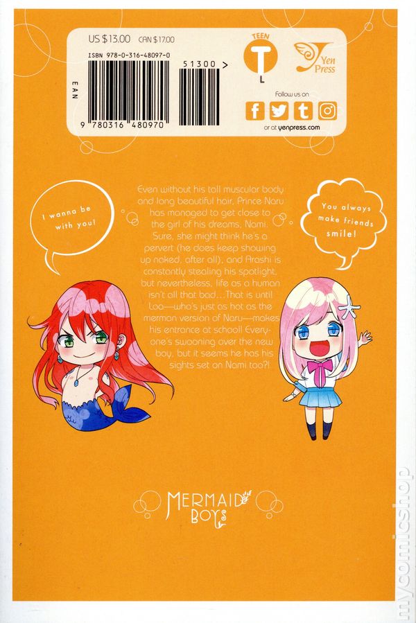Even without his tall muscular body and long beautiful hair, Prince Naru has managed to get close to the girl of his dreams, Nami. Sure, she might think he's a pervert (he does keep showing up naked, after all), and Arashi is constantly stealing his spotlight, but nevertheless, life as a human isn't all that bad...That is until Loa-who's just as hot as the merman version of Naru-makes his entrance at school! Everyone's swooning over the new boy, but it seems he has his sights set on Nami too?!