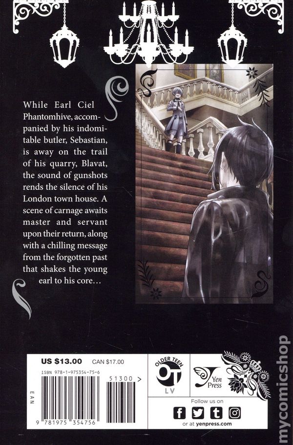 While Earl Ciel Phantomhive and his indomitable butler, Sebastian, are away on the trail of Blavat and the Blue Star Cult, the sound of gunshots echoes through the halls of their London townhouse. What chaos awaits master and servant upon their return home? And why is the young earl shaken to his core by the message left behind by the invader?