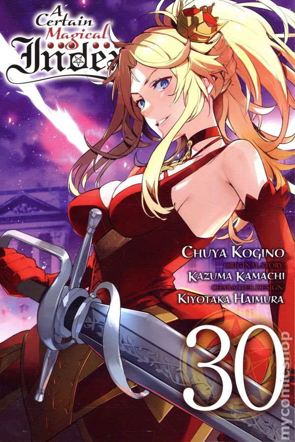 Volume 30 - 1st printing. Written by Kazuma Kamachi. Art and cover by Chuuya Kogino. Translated by Andrew Prowse. With the overwhelming power of the Curtana Original in hand, Princess Carissa is unstoppable! Touma scrambles to stop her coup d'etat, but to face her unyielding might, he'll first have to find some allies! Softcover, 5-in. x 7-in., 176 pages, B&W. Cover price $13.00.