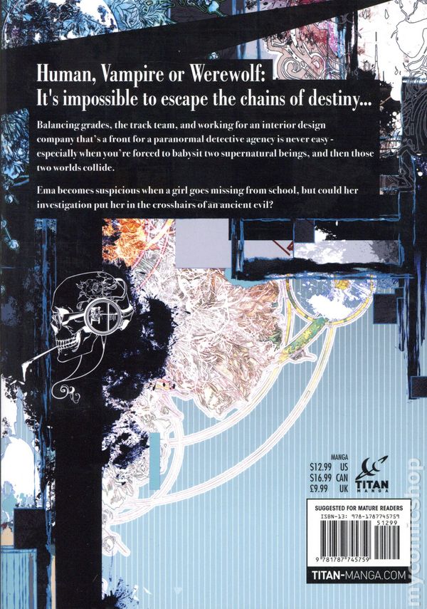 Volume 2 - 1st printing. Story and art by Akira Kanou. Translated by Molly Rabbitt. VAMPIRES AND WEREWOLVES COLLIDE IN THIS MODERN FANTASY EPIC! THE SUPERNATURAL UNDERWORLD BECOMES EVEN MORE ENTANGLED WITH EVERYDAY LIFE! Ema, a high school student, takes up a job at an enigmatic design agency run by the vampire Tamaki. But she quickly learns of its hidden side: it doubles as a shadow detective agency. Partnering with Shin Manabe, a police officer with ties to the werewolf community, they dive into a web of mystery involving supernatural beings concealed among humans. Softcover, 5-in. x 7-in., 176 pages, B&W. Cover price $12.99.