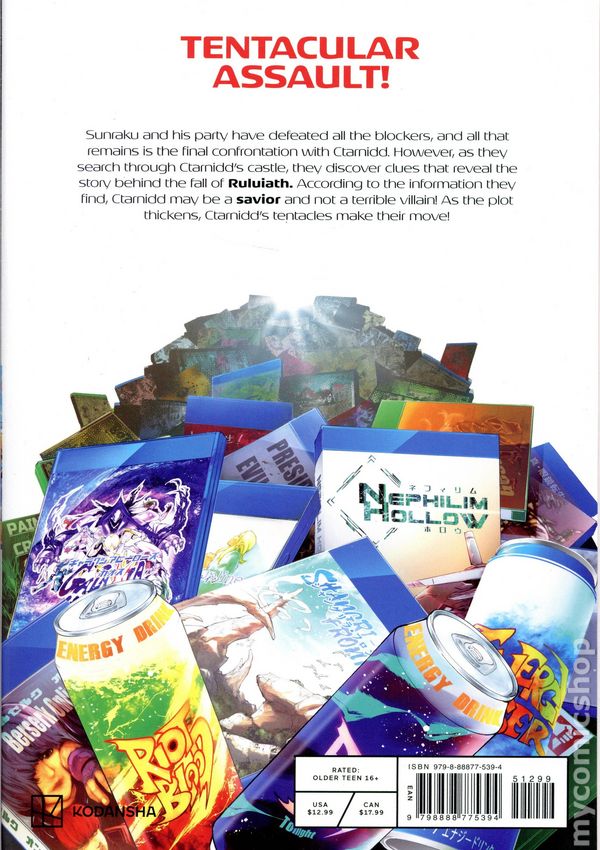 Volume 8 - 1st printing. Written by Katarina. Art and cover by Ryosuke Fuji. Translated by Kevin Gifford. Having survived a fierce attack by one of the Shangri-La Frontier PK clans, Sunraku goes into the fighting ring against ten powerful monsters as part of a unique scenario. He barely escapes with his life, only to then receive an invitation from his gamer friend Pencilgon to help her take down a unique monster known as Wethermon the Tombguard. With Wethermon still undefeated by any of the game's 30 million players, Sunraku may have bitten off more than he can chew! Softcover, 5-in. x 7-in., 192 pages, B&W. Older Teen (16+) Cover price $12.99.