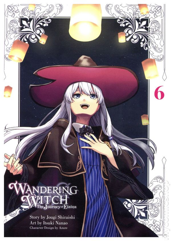 Volume 6 - 1st printing. Written by Jougi Shiraishi. Art and cover by Azure. Translated by Nicole Wilder. On this stretch of her leisurely journey, Elaina encounters a competitive broomstick prodigy, a bandit and their mother, a young politician and their wife, a woman who understands the feelings of tools, a sorcerer dedicated to medicine making, a cursed slave and a former mercenary, a succubus who has absolutely no luck with the opposite gender, a teacher and schoolgirl at a certain academy, and a woman who owns a bakery. Traveling here, there, and everywhere, Elaina spins yet another hilarious yarn. What new farewells await her this time? Softcover, 6-in. x 8-in., 224 pages, Text (with B&W Chapter Illustrations). Teen Cover price $15.00.