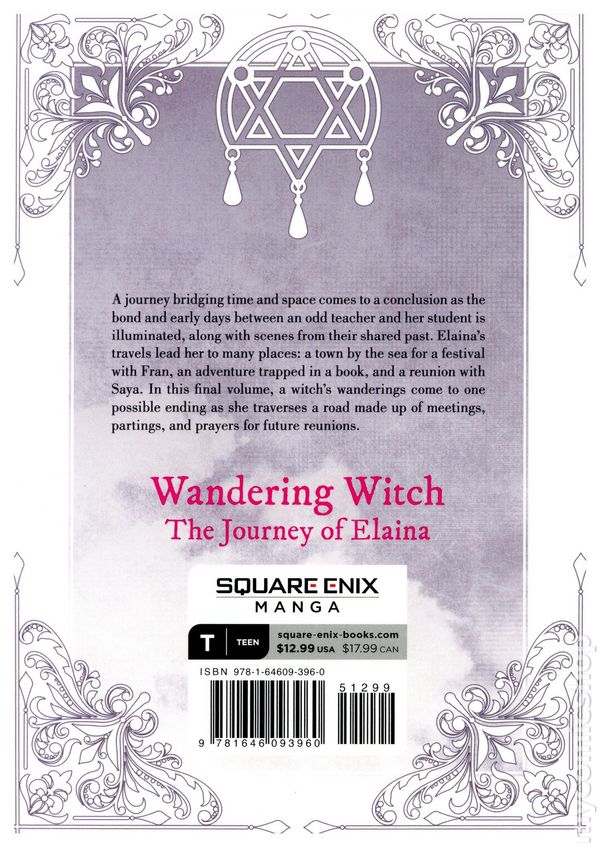 Volume 6 - 1st printing. Written by Jougi Shiraishi. Art and cover by Itsuki Nanao. Character Design by Azuru. Translated by Taylor Engel. A journey bridging time and space comes to a conclusion as the bond between an odd teacher and her student is illuminated, along with scenes from their shared past. Elaina's travels lead her to many places: a town by the sea for a festival with Fran, an adventure trapped in a book, and a reunion with Saya. In this final volume, a witch's wanderings come to one possible ending as she traverses a road made up of meetings, partings, and prayers for future reunions. Softcover, 5-in. x 7-in., 192 pages, B&W. Teen Cover price $12.99.