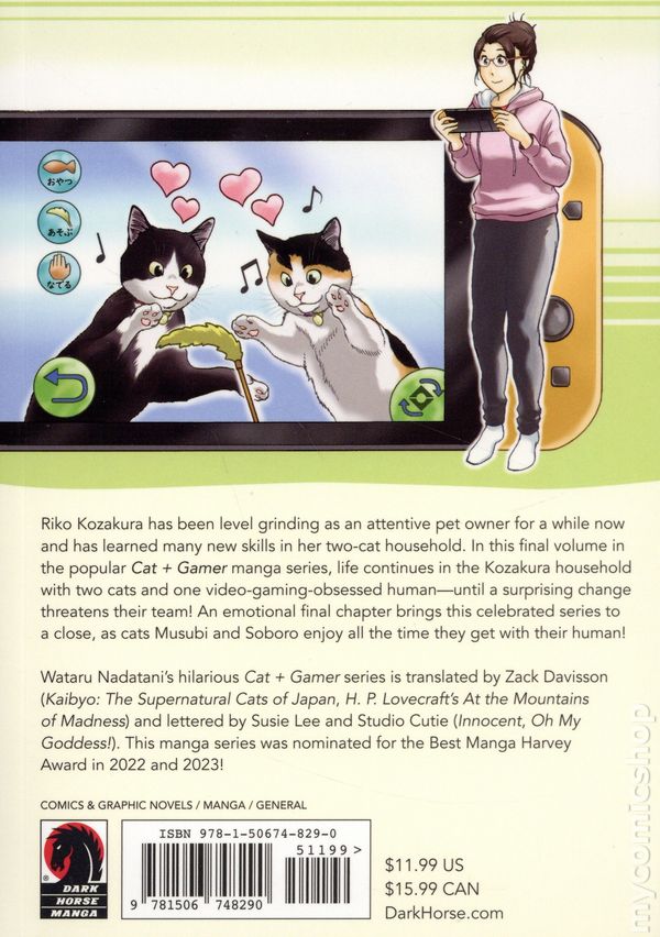 Volume 8 - 1st printing. Story and art by Wataru Nadatani. Translated by Zack Davisson. Riko Kozakura has been level grinding as a pet owner for a while now, and has learned many new skills. Life continues in the Kozakura household with two cats and one videogaming-obsessed human in this finale to the popular manga series! "Leveling up" in skills, surprises, and adventures, Riko discovers how to adjust her apartment and daily habits for two cats! Softcover, 5-in. x 7-in., 160 pages, B&W. Cover price $11.99.