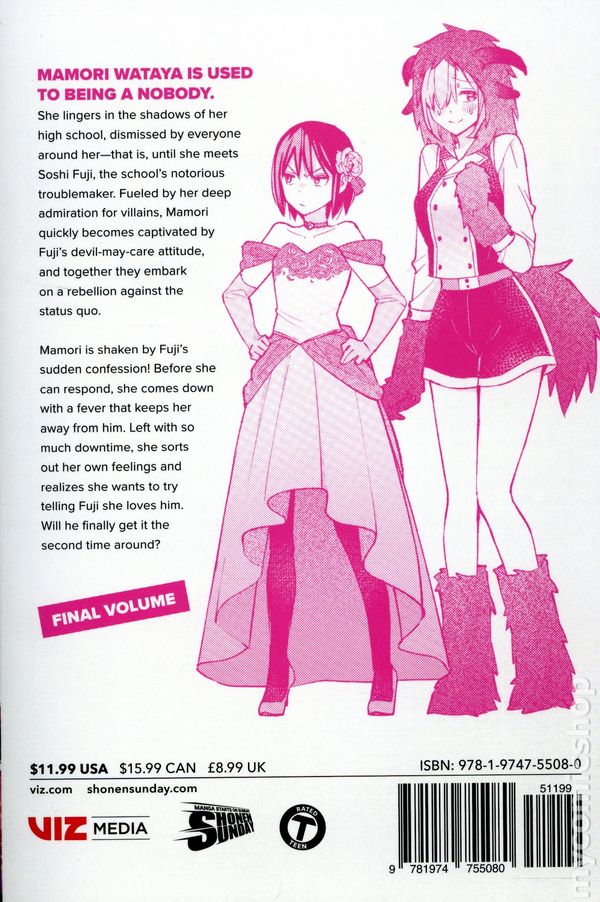 Volume 7 - 1st printing. Story and art by Yutaka. Translated by Andria McKnight. Sometimes being the villain is way more fun than being the hero. Mamori Wataya is used to being a nobody. She lingers in the shadows of her high school, dismissed by everyone around her-that is, until she meets Soshi Fuji, the school's notorious troublemaker. Fueled by her deep admiration for villains, Mamori quickly becomes captivated by Fuji's devil-may-care attitude, and together they embark on a rebellion against the status quo. Mamori is shaken by Fuji's sudden confession! Before she can respond, she comes down with a nasty cold that keeps her away from Fuji. Left with so much downtime, she sorts out her own feelings and realizes she wants to try confessing again. Will Fuji finally get it the second time around? Mamori and Fuji's sweet and villainous tale ends here. Softcover, 5-in. x 7-in., 192 pages, B&W. Teen Cover price $11.99.