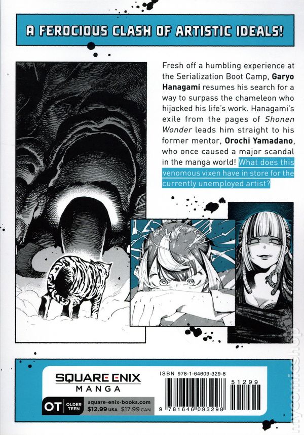 Volume 2 - 1st printing. Story and art by Ryo Ishiyama. Translated by Kevin Yuan. When a veteran manga creator inexplicably switches bodies with his jealous assistant, their clashing artistic ideals will rock the entire industry! Renowned manga artist Garyo Hanagami has lost his name and fame to a cold-blooded imposter! Stuck in the body of rookie Shinobu Miyama, he nonetheless secures an invitation to Shonen Wonder's Serialization Boot Camp. There, he's pitted against talented up-and-comers for the chance to draw a weekly series with a guaranteed anime adaptation! Will Hanagami regain his glory, or will he be outshined by his new peers? Softcover, 5-in. x 7-in., 208 pages, B&W. Older Teen Cover price $12.99.