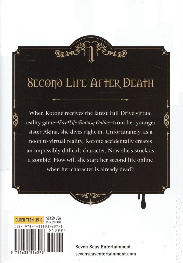 Volume 1 - 1st Printing. Written by Akisuzu Nenohi. Art by Ao Sonohara and Koma Warita. Character Design by Sherry. Adapted by Asha Bardon. Translated by Joshua Hardy. When Kotone receives the latest Full Drive virtual reality game–Free Life Fantasy Online–from her younger sister Akina, she dives right in. Unfortunately, as a noob to virtual reality, Kotone accidentally creates an impossibly difficult character. Now shes stuck as a zombie! How will she start her second life online when her character is already dead? Softcover, 5-in. x 7-in., 192 pages, B&W. Older Teen (15+) Cover price $13.99.