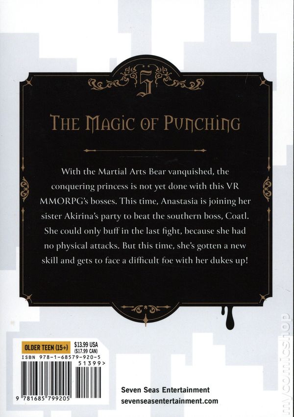 Volume 5 - 1st Printing. Written by Akisuzu Nenohi. Art by Ao Sonohara and Koma Warita. Character Design by Sherry. Adapted by Asha Bardon. Translated by Joshua Hardy. With the Martial Arts Bear vanquished, the conquering princess is not yet done with this VR MMORPG's bosses. This time Anastasia is joining her sister Akirina's party to beat the southern boss, Coatl. She could only buff in the last fight, because she had no physical attacks. But this time, she's gotten a new skill and gets to face a difficult foe with her dukes up! Softcover, 5-in. x 7-in., 160 pages, B&W. Older Teen (15+) Cover price $13.99.