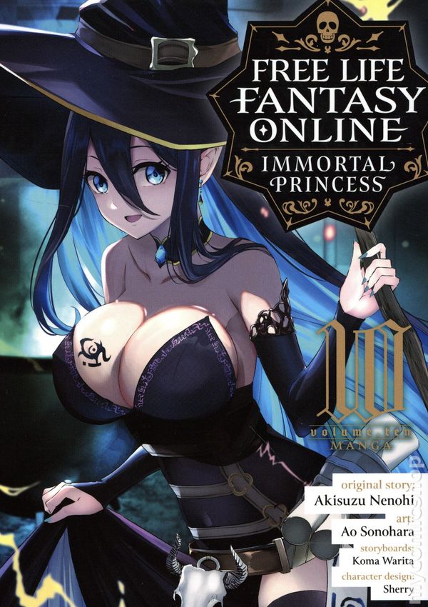 Volume 9 - 1st Printing. Written by Akisuzu Nenohi. Art by Ao Sonohara and Koma Warita. Character Design by Sherry. Adapted by Asha Bardon. Translated by Joshua Hardy. A TRIO OF SKELETON SOLDIERS! As the VR MMORPG Free Life Fantasy Online approaches its second world event, the Immortal Princess Anastasia dives further into her Alchemy studies in preparation. She already has a duo of servants backing her up in battle, but theres only one thing better than two skeletons—three skeletons! But can her new companions help her solo previously unsurmountable foes? And what new skills will she need to unlock to come out on top in yet another climactic world event?! Softcover, 5-in. x 7-in., 160 pages, B&W. Older Teen (15+) Cover price $13.99.