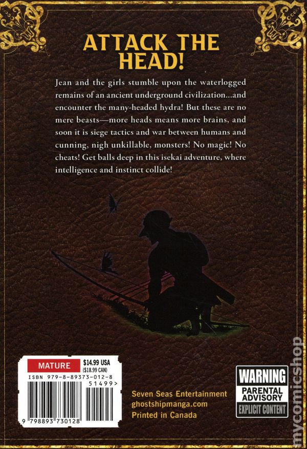 Volume 11 - 1st printing. Story and art by Kakeru. Translated by Ethan Cook. Jean and the girls stumble upon the waterlogged remains of an ancient underground civilization... and encounter the many-headed hydra! But these are no mere beasts-more heads means more brains, and soon it is siege tactics and war between humans and cunning, nigh unkillable, monsters! No magic! No cheats! Get balls deep in this isekai adventure, where intelligence and instinct collide! Softcover, 5-in. x 7-in., 178 pages, B&W. Mature Readers Cover price $14.99.