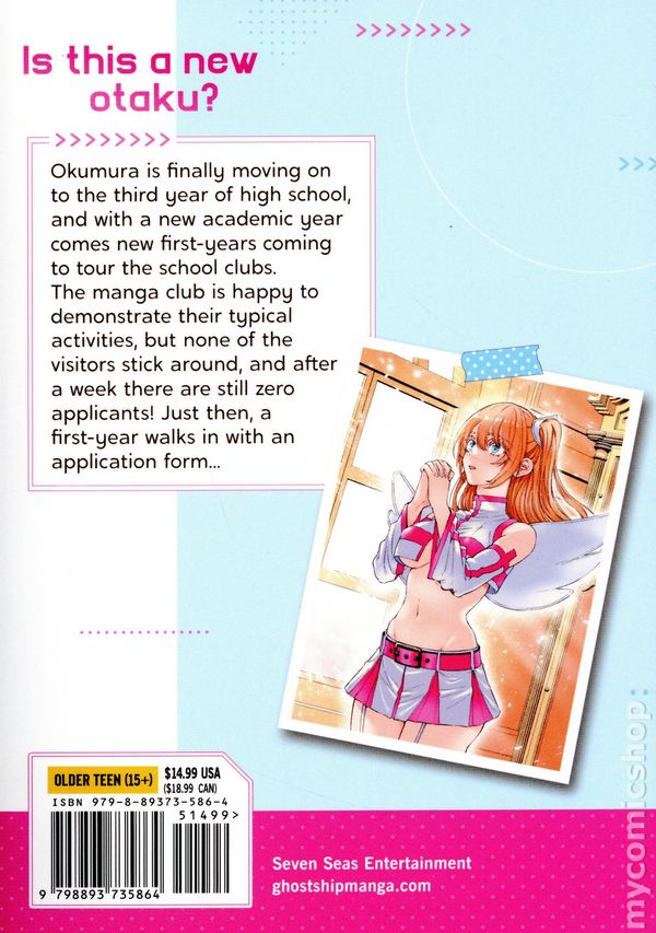 Volume 15 - 1st printing. Story and art Yu Hashimoto. Translated by Elena Krillova. Adapted by David Lumsdom. Okumura is finally moving on to the third year of high school, and with a new academic year comes new first-years coming to tour the school clubs. The manga club is happy to demonstrate their typical activities, but none of the visitors stick around, and after a week there are still zero applicants! Just then, a first-year walks in with an application form... Softcover, 5-in. x 7-in., 176 pages, B&W. Older Teen 15+ Cover price $14.99.