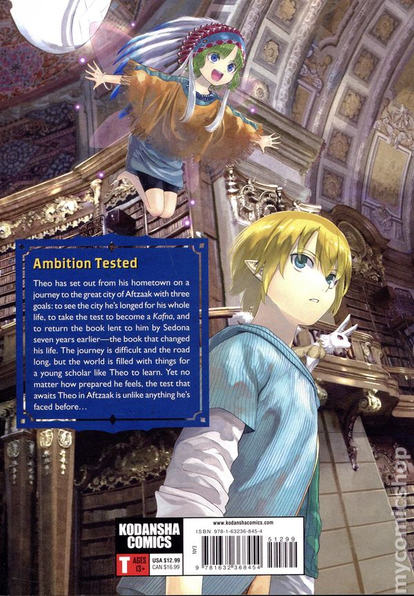 Volume 7 - 1st printing. Story and art by Mitsu Izumi. Translated by Stephen Kphler. In the small village of Amun lives a poor boy named Theo. Theo adores books, but because of his pointed ears and impoverished life, he isn't allowed to use the village library. As he endures the prejudice and hatred of the village, he dreams of going where such things don't exist: Aftzaak, the City of Books. But one day, Theo chances to meet a Kafna-a librarian who works for the great library of Aftzaak-and his life changes forever... Softcover, 6-in. x 8-in., 240 pages, B&W. Ages 13+ Cover price $12.99.