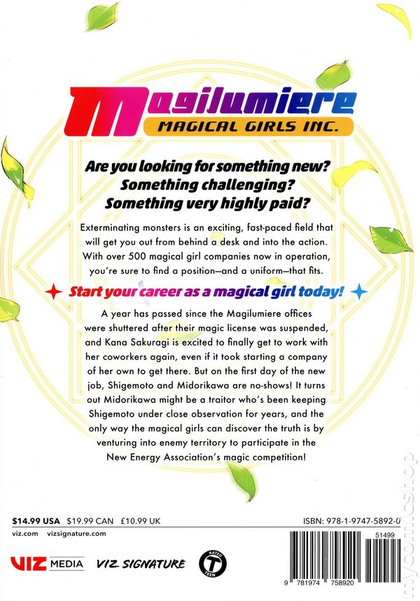 Volume 10 - 1st printing. Written by Sekka Iwata. Art and cover by Yu Aoki. Translated by Camellia Nieh. A year has passed since the Magilumiere offices were shuttered after their magic-operation license was suspended, and Kana Sakuragi is excited to finally get to work with her coworkers again, even if it took starting a company of her own to get there. But on the first day of the new job, Shigemoto and Midorikawa are no-shows! It turns out Midorikawa might be a traitor whos been keeping Shigemoto under close observation for years, and the only way the magical girls can discover the truth is by venturing into enemy territory to participate in the New Energy Associations magic competition! Softcover, 5 3/4-in. x 8 1/4-in., 224 pages, B&W. Teen Cover price $14.99.