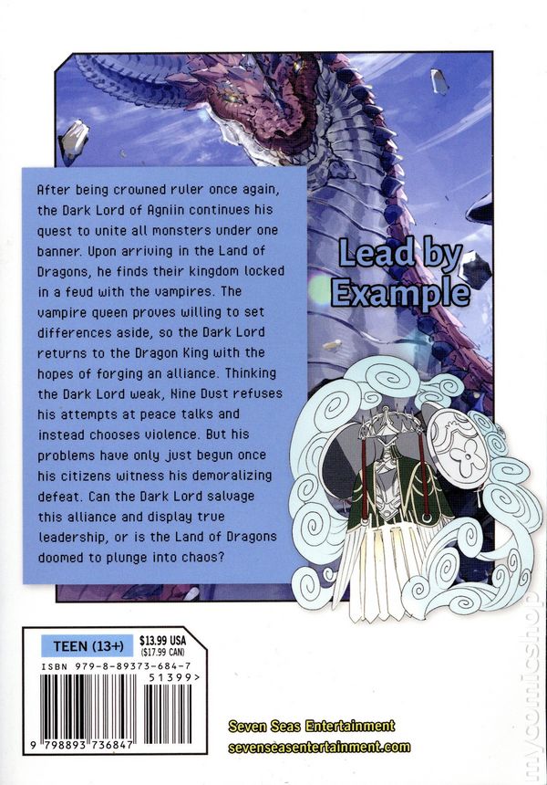 Volume 9 - 1st printing. Story and art by Tourou. After being crowned ruler once again, the Dark Lord of Agniin continues his quest to unite all monsters under one banner. Upon arriving in the Land of Dragons, he finds their kingdom locked in a feud with the vampires. The vampire queen proves willing to set differences aside, so the Dark Lord returns to the Dragon King with the hopes of forging an alliance. Thinking the Dark Lord weak, Nine Dust refuses his attempts at peace talks and instead chooses violence. But his problems have only just begun once his citizens witness his demoralizing defeat. Can the Dark Lord salvage this alliance and display true leadership, or is the Land of Dragons doomed to plunge into chaos? Softcover, 5-in. x 7-in., 200 pages, B&W. Cover price $13.99.