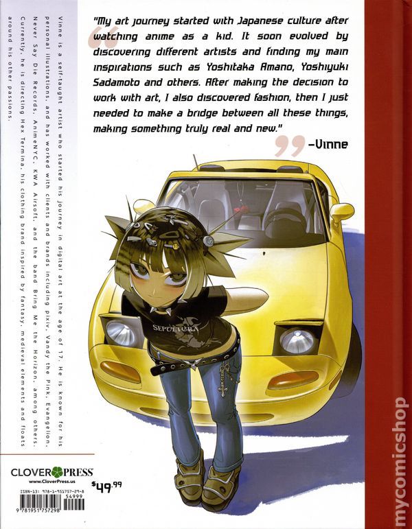 1st printing. Collecting the best of Vinnes art from 2018 to 2024, MY WAY by VINNE is Clover Presss latest high end artbook. Boasting 160 pages of amazing art, this deluxe hardcover features many of Vinnes personal illustrations, concepts, and designs, collected all in one volume. Vinnes client list is vast, having worked with Pixiv, Vandy the Pink, Evangelion, Never Say Die Records, AnimeNYC, KWA Airsoft, and the band Bring Me the Horizon. Hes currently focused on Hex Termina, his pop-up clothing and lifestyle brand, inspired by fantasy, medieval and anime elements. He recently successfully launched his store in H4LO in Harajuku, Tokyo. Hardcover, 8 1/2-in. x 11-in., 160 pages, full color. Cover price $49.99.