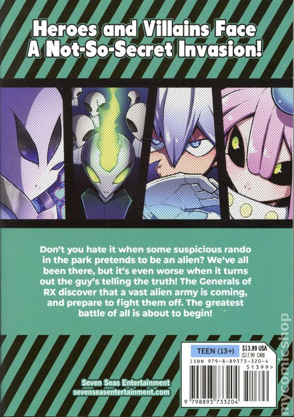 Volume 12 - 1st printing. Story and art by Jin. Translated by Timothy MacKenzie. Adapted by T. Campbell. Don't you hate it when some suspicious rando in the park pretends to be an alien? We've all been there, but it's even worse when it turns out the guy's telling the truth! The Generals of RX discover that a vast alien army is coming, and prepare to fight them off. The greatest battle of all is about to begin! Softcover, 5-in. x 7-in., 162 pages, B&W. Teen (13+) Cover price $13.99.