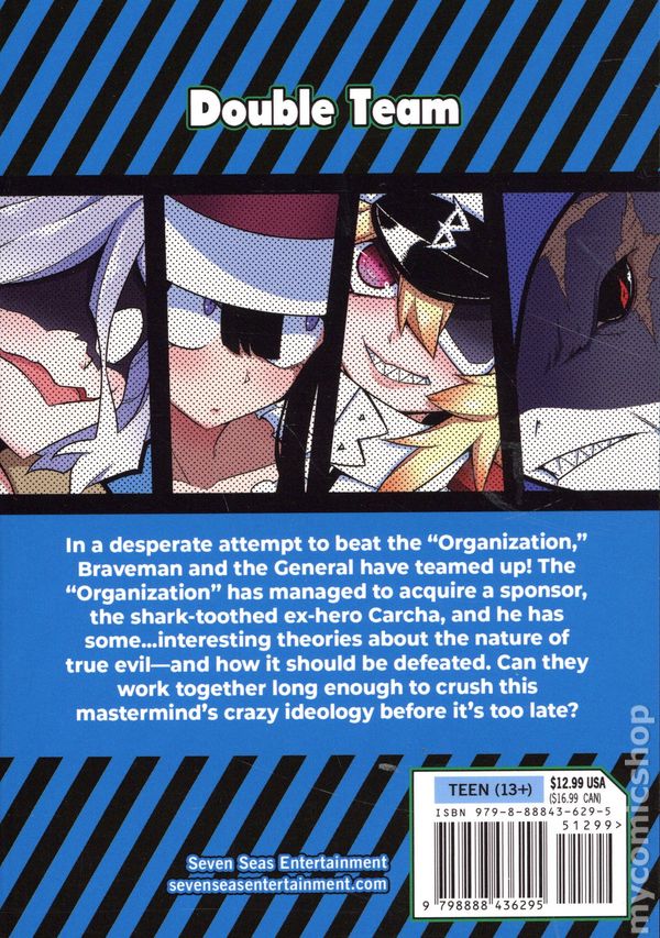 Volume 7 - 1st printing. Story and Art by Jin. Translated by Timothy MacKenzie. Adapted by T. Campbell. A new power known as the Organization has emerged, led by the charismatic-and-definitely-not-copyright-infringing Jester! What kind of might does this Organization have at its disposal? And does our intrepid General have what it takes to stand up to them? Well, if its a fight they want, then its a fight theyll get! The entire Villain League is rolling out! Softcover, 5-in. x 7-in., 180 pages, B&W. Teen (13+) Cover price $12.99.