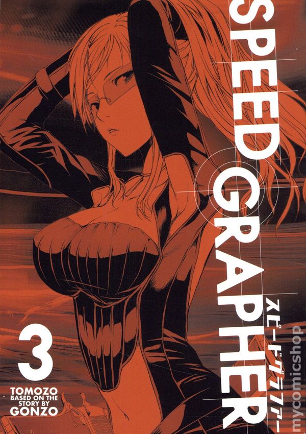 Volume 3 - 1st printing. Story and art by Tomozo. Based on the Story by Gonzo. Original Chacrater Design by Yusuke Kozaki. Translated by Motoko Tammuro and Jonathan Clements. ADAPTED FROM THE HIT GONZO ANIME OF THE SAME NAME! DIVE INTO THE CHAOS OF A NEAR-FUTURE WORLD! In this gripping culmination of terrors and action, Saiga and Kagura's race against time heats up, with the Roppongi Club hot on their heels. Their investigation leads them down a frightening path, as they unravel the secrets of Kagura's mother's past, and delve into the mystery of her father's identity. CORRUPTION, SUPERNATURAL SECRETS, AND DEVASTATING BATTLES COLLIDE IN TOMOZO'S EPIC ENDING TO THE SPEED GRAPHER TRILOGY! Softcover, 5-in. x 7-in., 192 pages, B&W. Mature Readers Cover price $12.99.