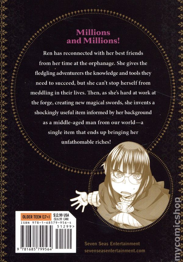 Volume 10 - 1st printing. Story and art by Ashi. Translated by Jshua Hardy. Adapted by Solo Mia. Ren has reconnected with her best friends from her time at the orphanage. She gives the fledgling adventurers the knowledge and tools they need to succeed, but she can't stop herself from meddling in their lives. Then, as she's hard at work at the forge, creating new magical swords, she invents a shockingly useful item informed by her background as a middle-aged man from our world-a single item that ends up bringing her unfathomable riches! Softcover, 5-in. x 7-in., 160 pages, B&W. Older Teen 17+ Cover price $12.99.