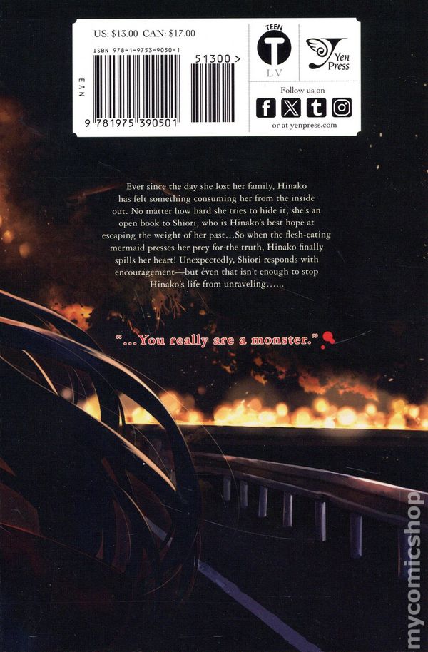 Volume 1 - 1st printing. Story and art by Sai Naekawa. Translated by Caleb Cook. "I've come to eat you." So softly utters the mermaid Shiori, as she emerges from the sea and takes high school girl Hinako by the hand. Hinako lives alone in a town by the sea, and possesses an unusually delicious body that is irresistible to nearby monsters. To ensure that she matures to the best condition, Shiori seeks to protect Hinako-all so that someday, she can devour every piece of her. What will become of Hinako's feelings as this looming unjust death closes in on her...? Softcover, 5-in. x 7-in., 160 pages, B&W. Teen Cover price $13.00.
