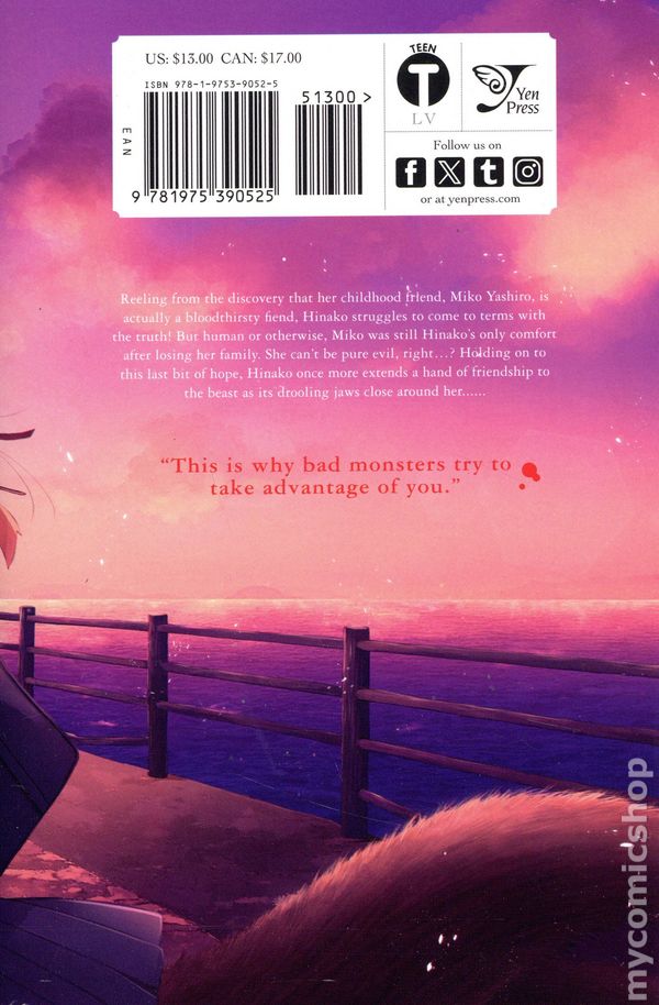 Volume 3 - 1st printing. Story and art by Sai Naekawa. Translated by Caleb Cook. "This is why bad monsters try to take advantage of you." Hinako is shocked to discover her childhood friend Miko is actually "Okitsune-sama"-a bloodthirsty fox monster. But monster or not, it was Miko who brought Hinako back from the depths of despair after losing her family. The human girl once more extends a hand of friendship, as the beast's jaws close around her... Softcover, 5-in. x 7-in., 160 pages, B&W. Teen Cover price $13.00.