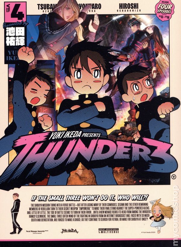 Volume 5 - 1st printing. Story and art by Yuki Ikeda. Translated by Cat Anderson. With the people of Shibuya in imminent danger, The Small Three leap across the sky to rush to their aid! Meanwhile, Rebellion forces fighting on the front lines of Shibuya have nearly been eradicated by a pair of alien reinforcements. Just when Segami, the last man standing, is about to meet his demise, The Small Three touch down! With the remnants of Rebellion as well as Doc and co. looking on, the battle to save Shibuya, Japan, even humanity itself resumes! Softcover, 5-in. x 7-in., 192 pages, B&W. Rated 13+ Cover price $13.95.