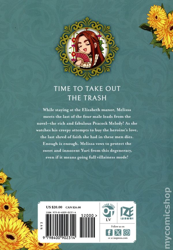 Volume 1 - 1st printing. Original Story by Soda Ice. Adapted by Berry. Art and cover by Blue Canna. Translated by Tapas Entertainment, Inc. When a modern-day college student wakes up in the body of Melissa Foddebrat, the villainess of a cliché reverse-harem novel, she is determined to cast aside the plot and live a quiet life of luxury, but...AGH! Why are all the men in this novel trash?! A sleazebag crown prince, an asshole sniper, a crazed werewolf, and an obsessive merchant-Melissa can't just stand by and watch the innocent heroine suffer at the hands of these four male leads. Scummy love interests, begone - this story is getting a rewrite! Softcover, 5 1/2-in. x 8 1/2-in., 272 pages, full color. Older Teen Cover price $20.00.