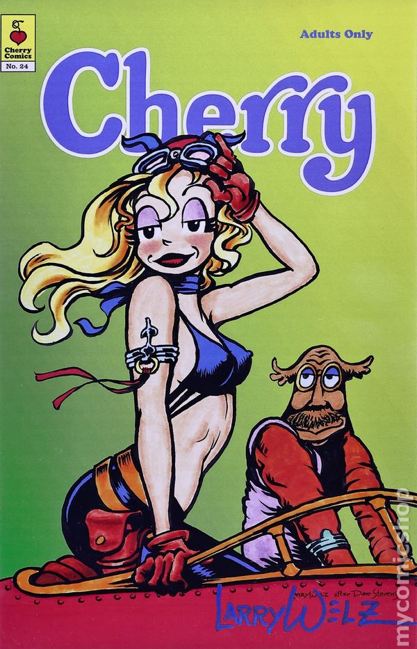 Happy Comics Exclusive Signed Edition Virgin Cover by Adam Hughes - limited to 100 Copies, Signed by cover artist, Adam Hughes. Story and Art by Larry Welz. Cherry #24 is bigger, longer, and harder than ever. It's a 48 page monster that has the next two chapters of the exciting ongoing epic. This issue also features All New Cherry Pin Ups by, Scott Diggs Underwood (Ed Edd n' Eddy, The Addams Family), Joe Pekar (Grimm Fairy Tales), Tuco El Buitre (Mademoiselle De Sade), Robert Ullman (Atom Bomb Bikini), Chance Wolf (Spawn, The Pitt), PHILO (Tales of Shaundra), Aaron Bordner (Alice Sinn, Monster High School) & Steven S. Crompton (Demi The Demoness). With Guest Strips by MastaJWood (Marvel, Dynamite), Shlepzig (Red, File 2231), & Gary Yap (Simpsons, King of the Hill).