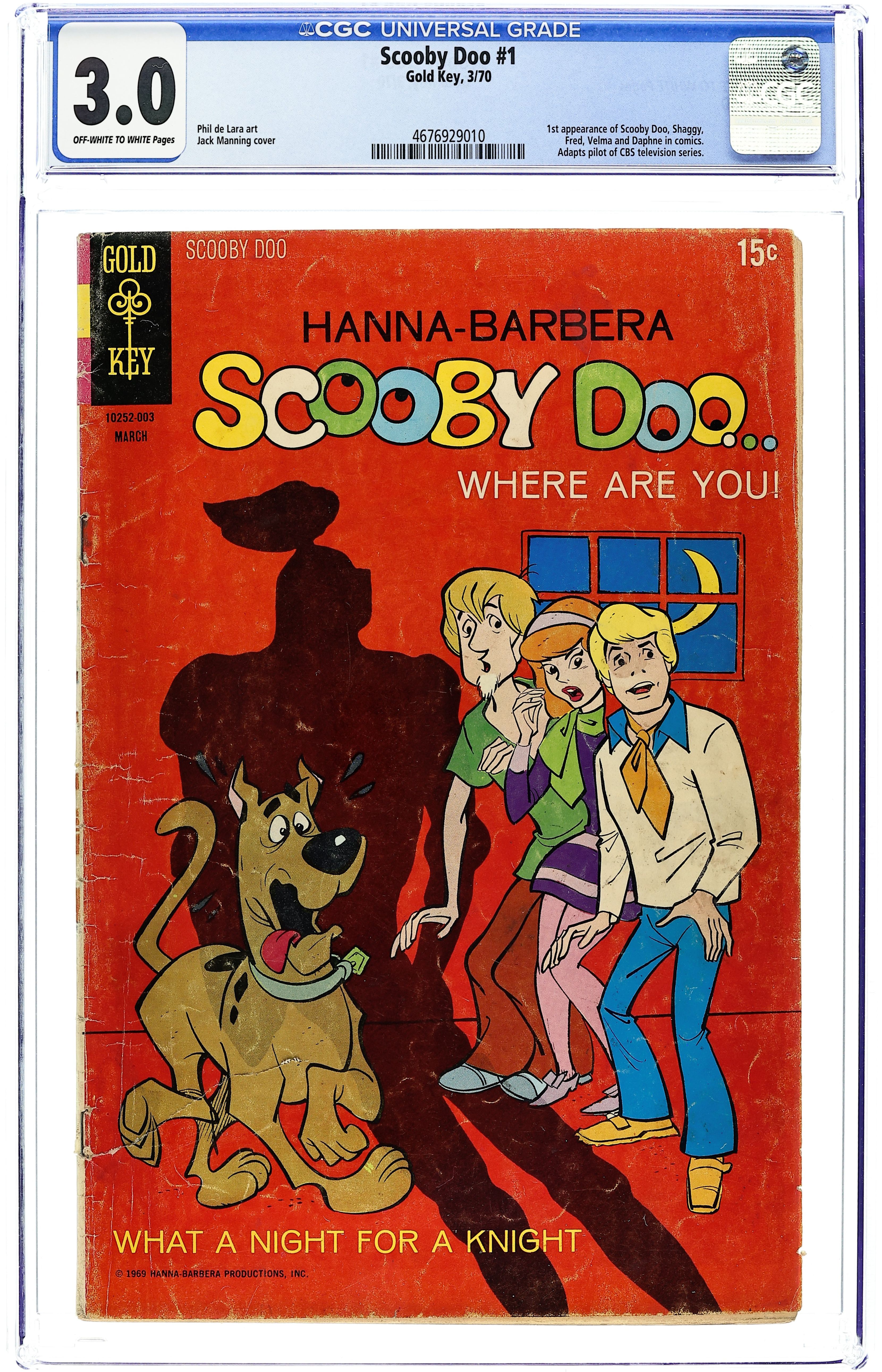 Number/month on cover: 10252-003/March. Cover by Jack Manning. Stories by unknown. Art by Phil De Lara. Based on the 1969-1970 TV series. In this issue: "What a Night for a Knight" - Coming home late from the movies, Shaggy and Scooby discover an abandoned truck with a mysterious crate. In it is a suit of armor, the Black Knight, which appears to come to life under a full moon. Characters in this story: Scooby Doo; Shaggy; Velma; Daphne; Fred; Professor Hyde White; Mr. Wikles. Plus: "Never Ape an Ape-Man" - Scooby and the gang are visiting the location set of the film The Ape-Man of Forbidden Mountain. Daphne's uncle, John Maxwell, is glad to have the gang as extras, as no other actors will work on the film. Apparently, there is a real Ape-Man scaring everyone off. Characters in this story: Scooby Doo; Shaggy; Velma; Daphne; Fred; John Maxwell; Carl the Stuntman; The Ape-Man. 32 pages, full color. Cover price $0.15.