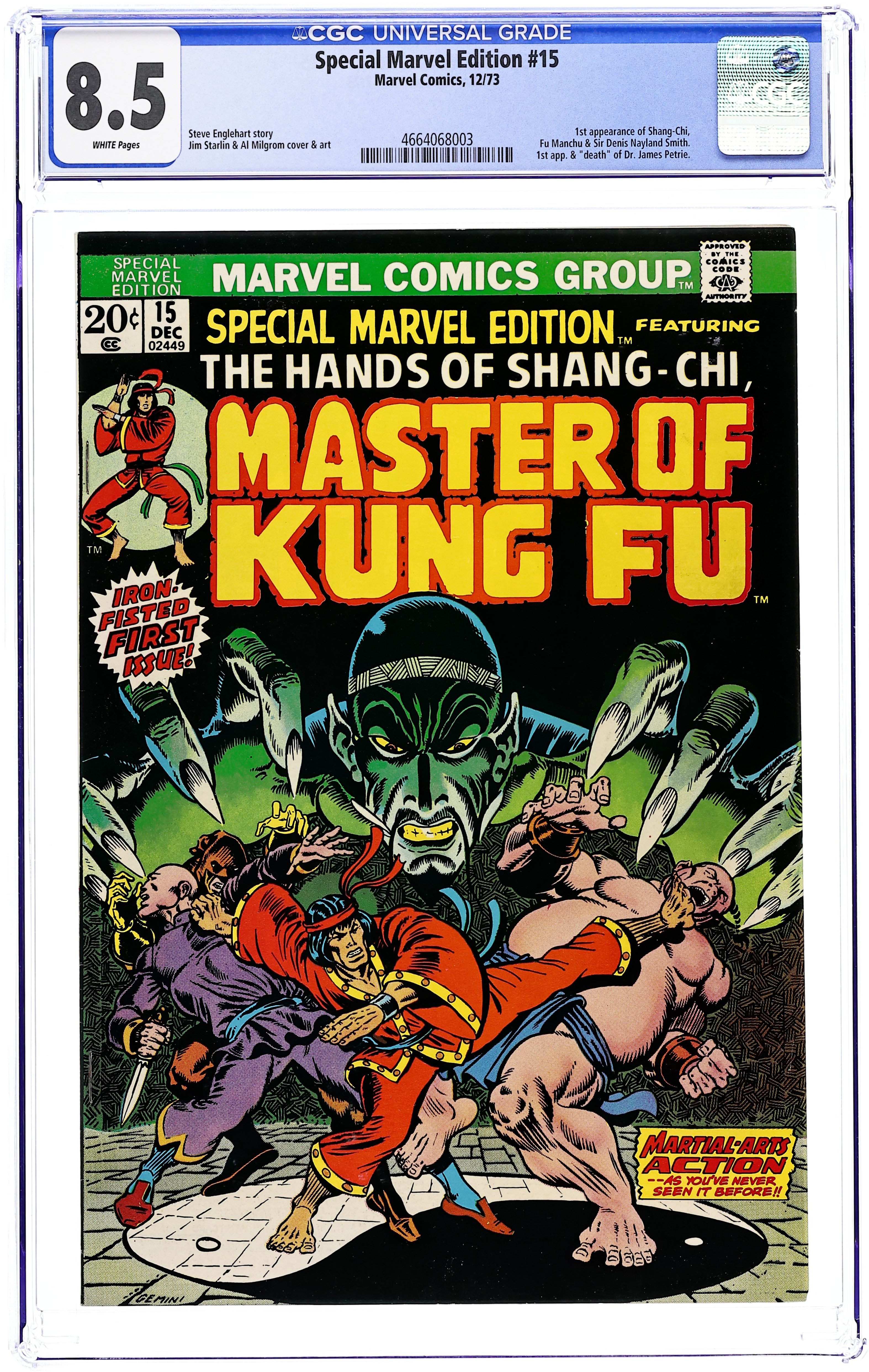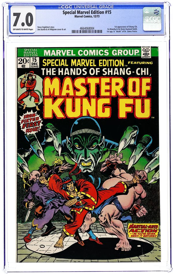 Ends Dec 8 9:23 PM CST Bid History 6 bids Current Bid $68 Your Secret Max Bid If you'd like to bid, please log in or register. Written by Steve Englehart and Jim Starlin. Art and cover by Jim Starlin and Al Milgrom. Shang Chi, making his first appearance, is a master of martial arts and the son of Fu Manchu, a Chinese mandarin and scientist. Fu Manchu sends Shang Chi to England in order to assassinate the evil Dr. Petrie for the common good. Shang Chi reluctantly agrees, but after the deed is done he is confronted by Sir Denis Nayland Smith, a former British intelligence officer who tells him the truth about Fu Manchu; that he is a nearly immortal evil mastermind. Shang Chi travels back to his father's secret lair in New York and renounces him. Text articles by Roy Thomas and Englehart about the creation of Shang-Chi. Ad for Astonishing Tales #21. A brief obituary for Syd Shores. Ad for the Marvel fan club FOOM (Friends of Ol' Marvel). 36 pages, full color. $0.20. Cover price $0.20.