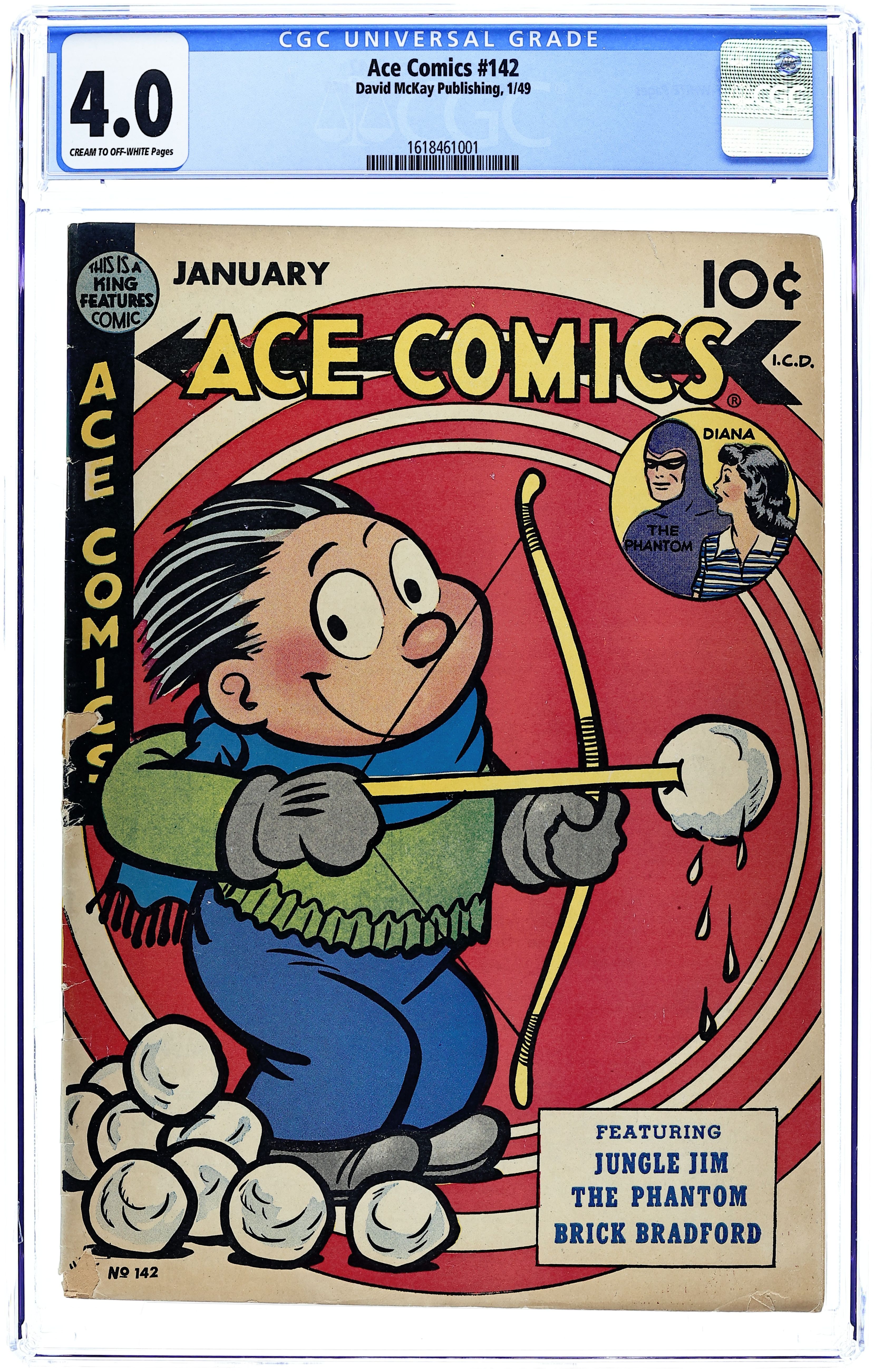 Cover by Joe Musial. Edited by Ruth Plumly Thompson (sometimes credited as Ace). Stories and art by Charles Flanders, Drake Williams, H. H. Knerr, Doc Winner, Chic Young, Joe Musial, Lee Falk, Ray Moore, William Ritt, Clarence Gray, Don Moore and Alex Raymond. Pioneering comics publisher David McKay presents an anthology series featuring reprints of King Features Syndicate comic strips. The Princess of Nimpore gives the Phantom three days to find her abducted father; Jungle Jim battles the deadliest beast in the jungle: man. The Phantom; Jungle Jim; Henry; Katzenjammer Kids; Fighting Americans; Blondie; Brick Bradford; The Lone Ranger; Teddy and Sitting Bull; Doc Winner's Daffy Doodles. 32 pages, Full Color. Cover price $0.10.
