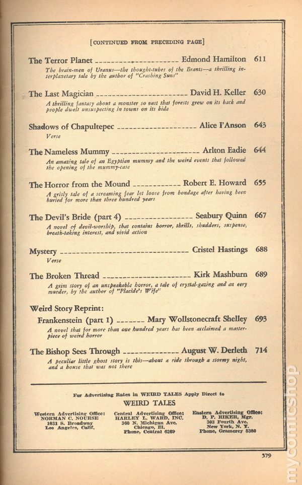 $508 WEIRD TALES January 1935 Pulp CGC 6.5 Robert Bloch, Good Girl Art Brundage Cover $1,259 Weird Tales #133 - Popular 1935 CGC 7.0 Clicking on the links to the eBay listings shown above and then making a purchase may result in MyComicShop earning a commission from the eBay Partner Network.