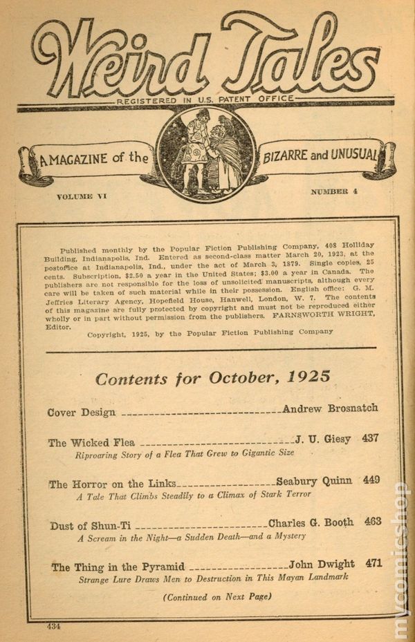 Volume 6, Issue 5 - November 1925. Edited by Farnsworth Wright. Horror and Fantasy stories in the pulp style. 6.75-in. x 10-in.; 128 newsprint pages, text (with B&W illustrations). Cover price $0.25.