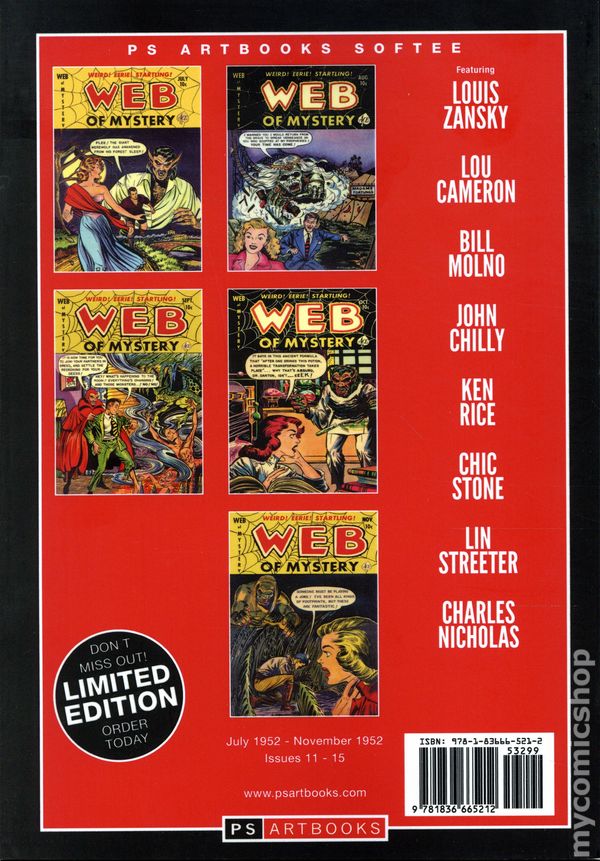 Volume 3 - 1st printing. "July-November 1952!" Collects Web of Mystery (1951-1955) #11-15. Come put your little clawed and emaciated hand in ours; we'll look after you! Ignore the darkness and the cemetery mist creeping through the Graveyard Gate and ignore the fact that the flesh seems to have slipped from your face. No matter, for this is comicbooks the way they were and should always be! Softcover, 184 pages, full color. Cover price $32.99.