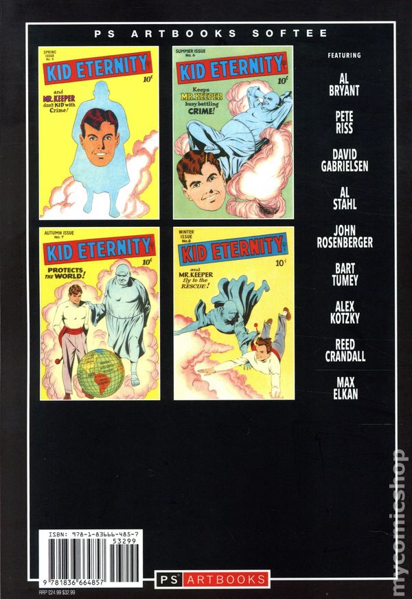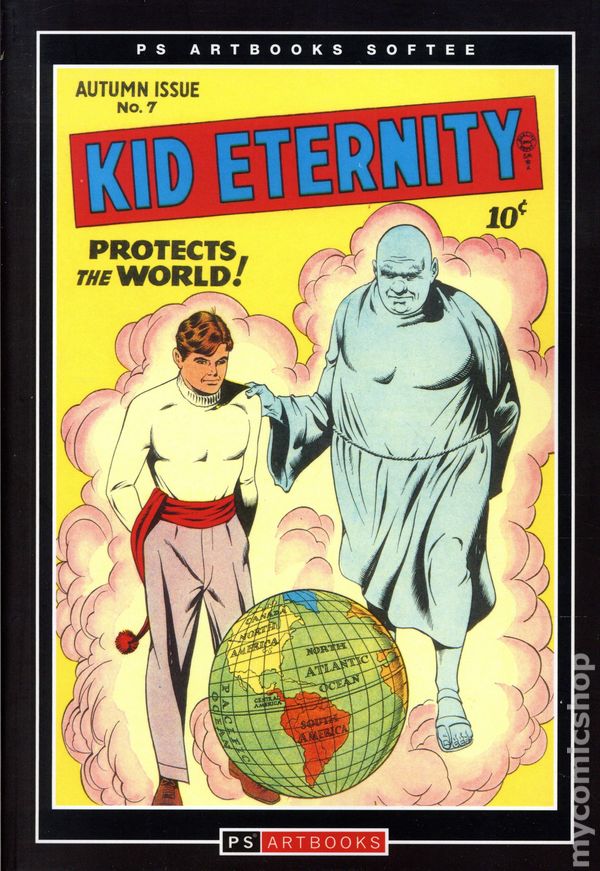 Volume 2 - 1st printing. "Mar 1947 -Jan 1948!" Collects Kid Eternity (1946-1949 1st Series) #5-8. Kid Eternity #5-8, restored in one volume by PS Artbooks, brings readers back to the golden age of comic book storytelling. Originally published in the early 1940s, these classic tales follow Kid Eternity, a supernatural hero with the power to summon historical and mythological figures to help him fight crime and injustice. In this beautifully restored collection, readers can experience vibrant vintage art and timeless adventures, all while witnessing the Kid's clever use of his powers to outwit villains. Softcover, 208 pages, full color. Cover price $32.99.