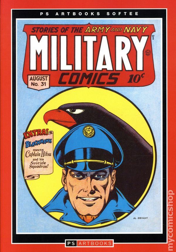 Volume 10 - 1st printing. "October 1944-an January 1945!" Collects Military Comics (1941) #33-35. Cover by Al Bryant. Take to the skies with Military Comics Volume 10! This explosive volume collects issues #33, #34, and #35, delivering another round of high-stakes action from the Golden Age of comics. Join Blackhawk and his elite squadron as they face off against sinister enemies, daring sabotage missions, and global peril-all rendered in bold, dynamic 1940s artwork. Brimming with heroic feats and wartime intrigue, this softcover edition is essential reading for fans of vintage military adventures and classic comic book storytelling. Softcover, 180 pages, full color. Cover price $32.99.