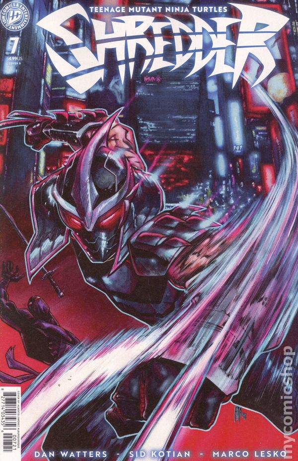 Limited 1 for 10 Retailer Incentive Variant Cover. (W) Dan Watters (A) Sid Kotian (CA) Isaac Goodhart The Shredder returns to Japan to recruit the Dog Star Clan, a rogue offshoot of the Foot Clan, to his new cause…but finds the cybernetic ninja clan infected by lethal malware. Now he will trace this virus to its root—and ensure those responsible feel the edge of his blade. 32 pages, full color, not rated. Cover price $4.99.