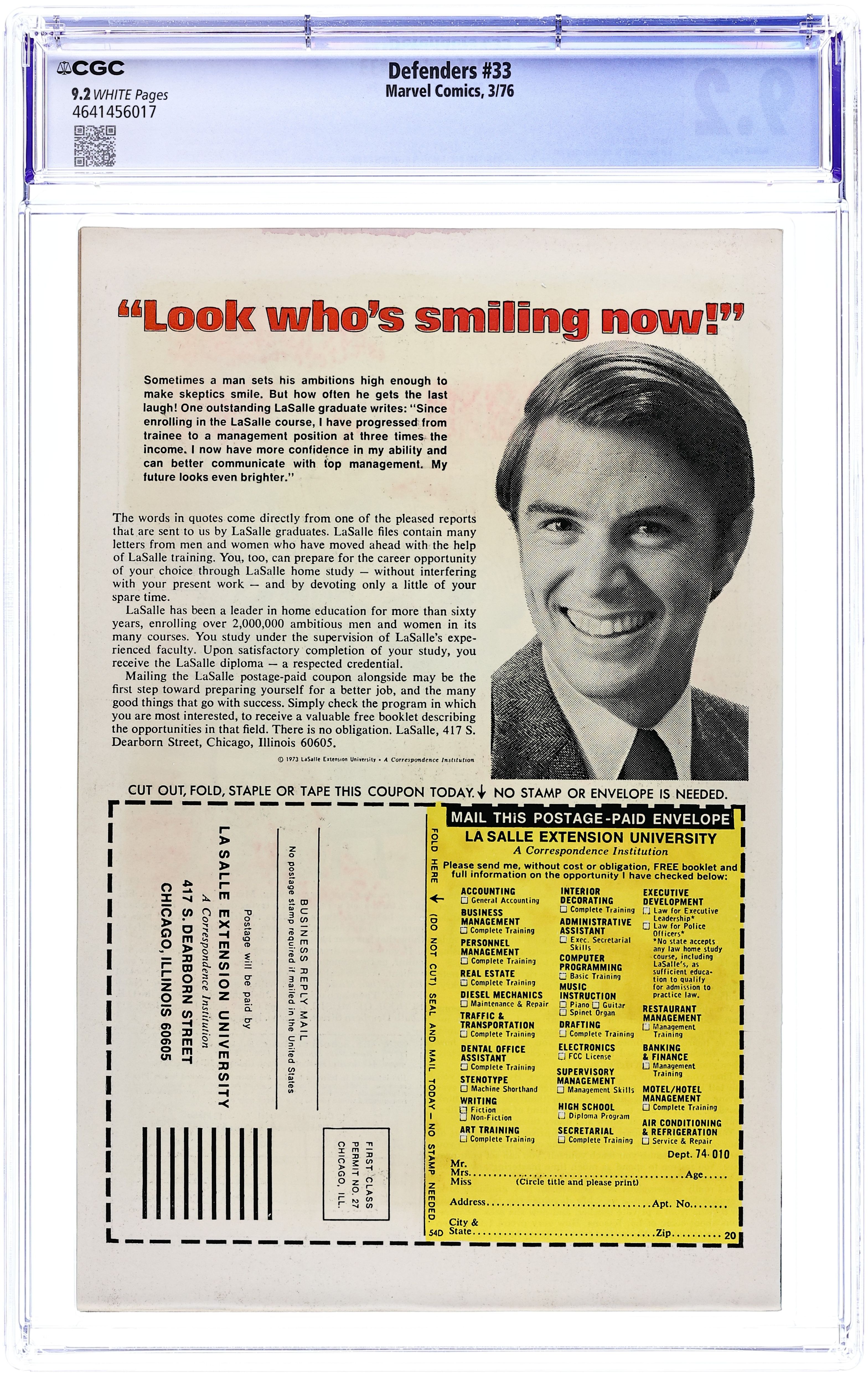 Tags: Hero/Villain TeamsDefenders (1972 1st Series) 33 CGC 9.2